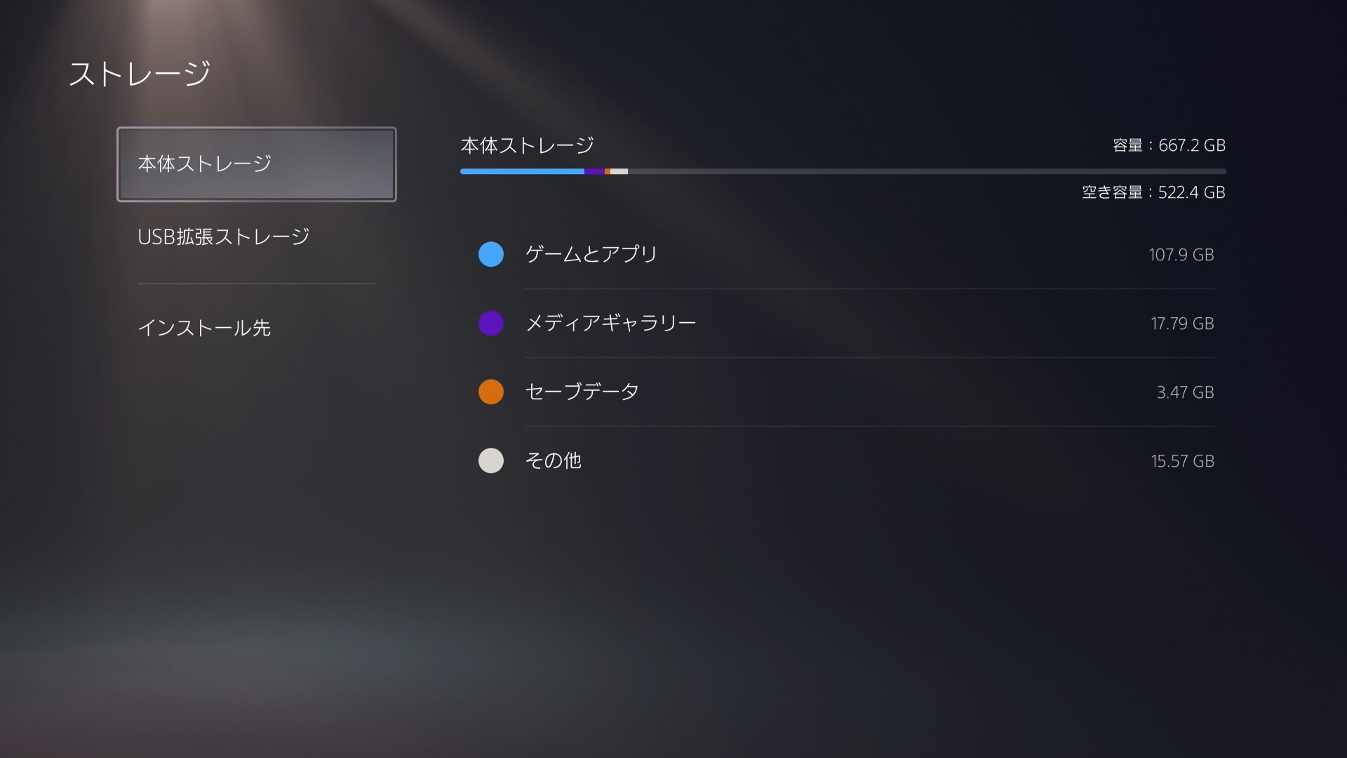 PS5のゲームは使用データ量も多いので、ソフト自体で7,8本ぐらいでいっぱいになります。